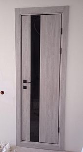 Дверь ПО Indigo 2 Дуб оксфорд стекло зеркало графит из Экошпона COVERFLEX (Двери Нева) в Орехово-Зуево с установкой и доставкой